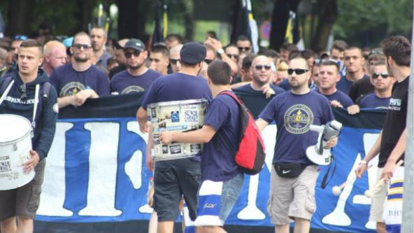 Popularni "Fanatikosi" su u blizini stadiona Bilino polje zapalili baklje, a nakon toga se uputili ka ulazima pevajući navijačke pesme. U jednom trenutku skandirali su i "Palestina!"