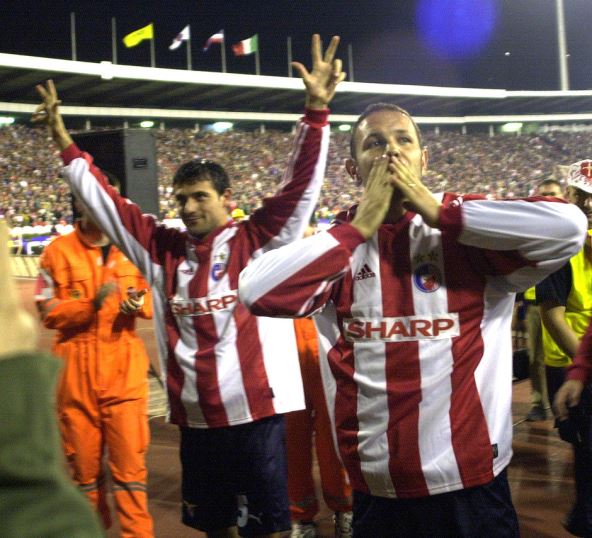 Epilog? Mihajlović i Stanković su obe utakmice (1:0 u Rimu, 1:1 u Beogradu) presedeli na klupi, a na revanš meč istrčali su u dresovima Crvene zvezde i bacili ih navijačima.