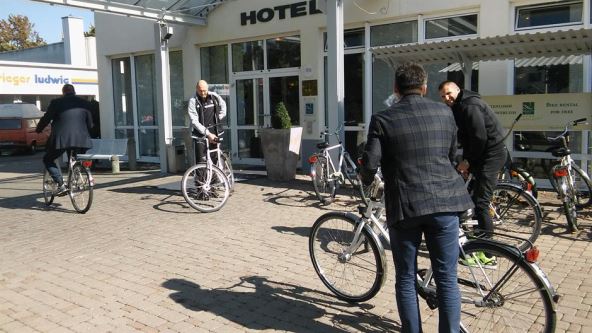 Zaposleni u FK Partizan rešili su da se prilagode ovdašnjim običajima i da grad obiđu na biciklama.