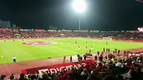 Intoniranje srpske himne Bože pravde nije moglo da prođe bez horskih zvižduka na stadionu u Elbasanu.