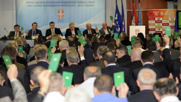 - "Tom odlukom, izbori u teritorijalnim fudbalskim savezima pomereni su za period od 11. do 30. aprila 2016. godine, dok će se konstitutivna Izborna skupština FSS održati krajem maja, početkom juna 2016".