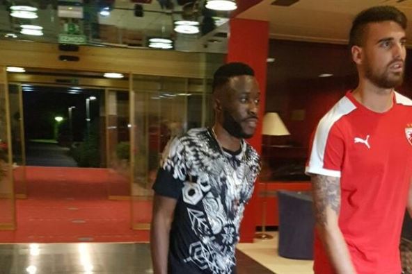 "Drago mi je što sam konačno ovde", rekao je Konga po dolasku u hotel u kojem su smeštenei fudbaleri Zvezde.