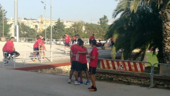 Kada su igrači Valete završili trening i krenuli put svlačionice, crveno-beli su već bili spremni da ih zamene na terenu. Tada je došlo i do susreta starih poznanika, Pabla Moučea i Luisa Ibanjeza sa jedne, a Lukasa Agirea sa druge strane.