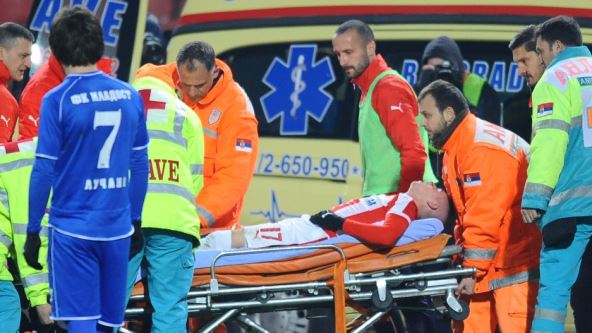 Posle nekoliko minuta i ukazane pomoći na licu mesta, Plavšić je na nosilima prebačen do ambulantnih kola, a zatim i do bolnice na snimanje, kako bi se utvrdilo da li je reč i prelomu ili jakom udarcu.