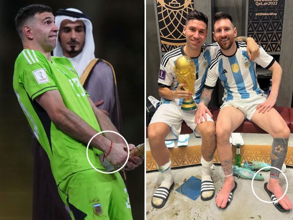 Mesi je prethodno davao crveni konac svojim saigračima koji su bili u golgeterskoj krizi (Felipe Kutinjo i Lautaro Martinez), da bi u finalu - amajlija prešla kod Emilijana Martineza. Mesi je častio svog golmana koji je uz njega bio heroj finala, pošto ne samo da je "skinuo" jedanaesterac Aurelijenu Čuameniju, nego je u poslednjim sekundama meča odbranio Kolo Muaniju i poslao meč na "penal lutriju".