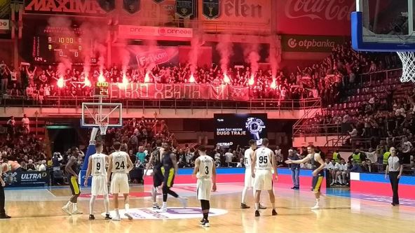 Neposredno posle toga, navijači su iznad partera upalili baklje uz poruku "Željko hvala ti".