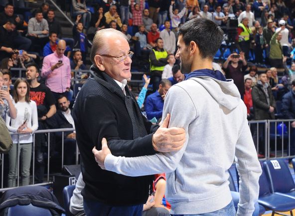 Naš najbolji teniser u istoriji stigao je u halu tokom utakmice protiv Austrije i u društvu članova porodice seo u prvi red, u kojem su već bili čuveni trener Dušan Duda Ivković, glumac Zoran Cvijanović, nekadašnji reprezentativac Nikola Lončar, kao i Vladimir Štimac, koji je pre meča dobio dres od predsednika Saveza Predraga Danilovića.
