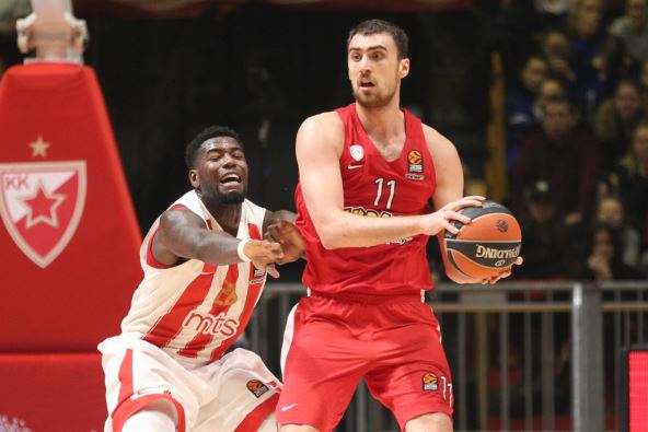 On se sa Pirejcima plasirao u Top 8 Evrolige i za drugo uzastopno ućešće na Fajnal foru će se boriti sa Žalgirisom. Prosečan učinak Milutinova u 26 utakmica elitnog takmičenja iznosi 9,3 poena i 5,8 skokova.