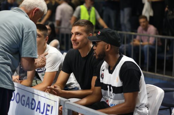Ljubimac Partizanovih navijača došao je na četvrtu utakmicu finalne serije Superlige i to u društvu trenera iz stručnog štaba svog tima, Sakramento Kingsa.