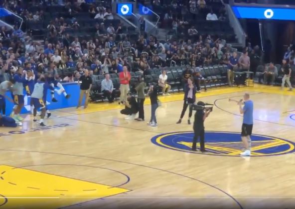 Na oduševljenje prisutnih na prvom otvorenom treningu "ratnika" u novoj dvorani "Čejs centru", u kojoj su Stef Kari i ostali pre neko veče doživeli lagan poraz od Los Anđeles Lejkersa u (ne)prijateljskom meču na startu sezone, Smajlagić se dohvatio mikrofona na centru i - ne zamerite ako grešimo - srčano i punim glasom otpevao neki od ovdašnjih hitova.