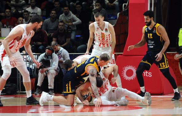 Utakmica je već bila odlučena, "orlovi" su vodili 90:82 u poslednjem minutu, kada je Letonac Janis Tima snažno ušao pod koš i sa leđa počeo da urada Branka Lazića.