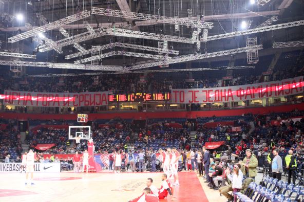 U Areni je istaknut veliki transparent "Crna Gora i Srbija to je jedna familija".