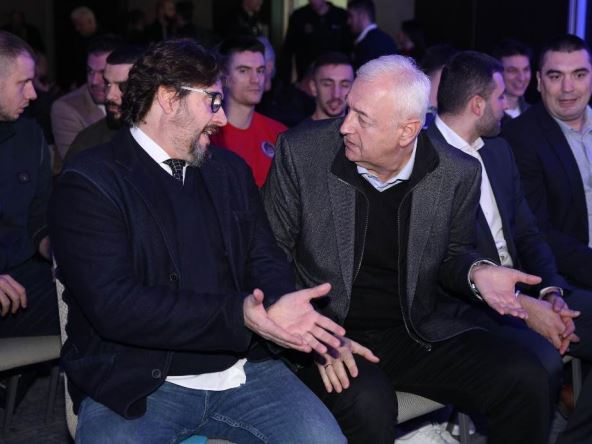 Uoči ceremonije žreba, Zvezdin trener ćaskao je sa šefom struke Partizana Andreom Trinkijerijem i predsednikom Košarkaškog saveza Srbije, Predragom Danilovićem.