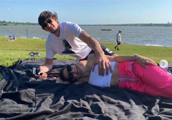 On je na Instagram okačio fotografiju njih dvoje kako leže napolju, a Boban je svoju ogromnu šaku položio na njene grudi, uz reči "Srećna godišnjica" i četiri emotikona.