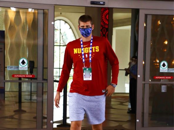 Nikola Jokić pojavio se u opremi i sa maskom na licu u "balonu" - tačnije "Diznilendu" - gde ga narednih 48 sati očekuje stroga izolacija, a onda i prvi trening sa ekipom.