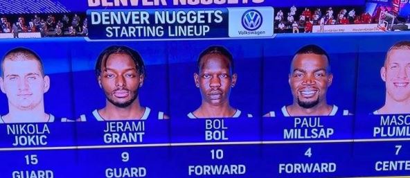 Denver je počeo meč u startnoj petorci Bol Bol (218 cm), Pol Mislap (201 cm), Mejson Plamli (211 cm), Nikola Jokić (213 cm), Džeremi Grant (203 cm), što je, bar prema dostupnim podacima najviša startna petorka u istoriji NBA, s prosečno 209,2 centimetara.