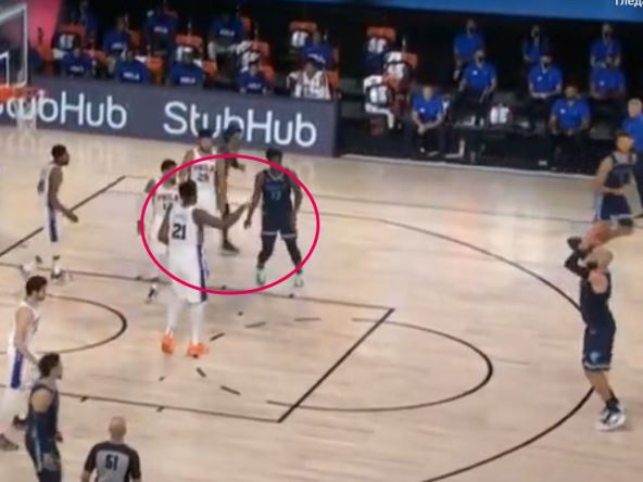 U jednom momentu odbrana Filadelfije zaboravila na Jonasa Valančiunasa, koji je ostao sam na šutu za tri poena. Kada je Embid primetio da se Litvanac sprema da uputi šut iz daljine, samo je omalovažavajuće, u stilu "nema ništa od koša", odmahnuo rukom.