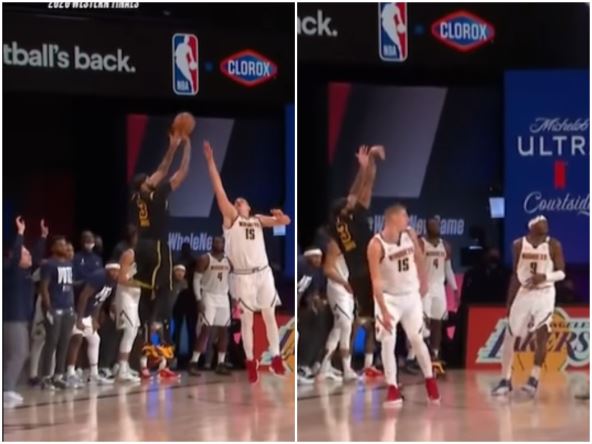 Deluje da je tražio pomoć na udvajanju Lebrona, to je iskoristio Dejvis i otvorio se za dodavanje, pokušao je Jokić da izađe na šut, ali ni to nije bilo dovoljno da zaustavi sjajnog košarkaša. Za dve sekunde uspeo je da ispali trojku i napravi preokret.