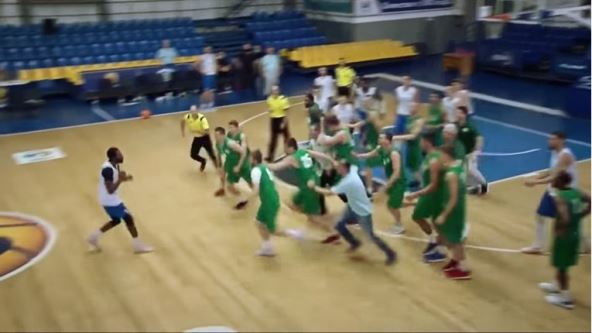 Jedan košarkaš Odese je dobio udarac u glavu, odnosno protivnički centar iz Termopila ga je zakačio prilikom blokade, pa je posle toga izbila velika frka. Stalno su uzvraćal jedni drugima i ubrzo je nastala makljaža.