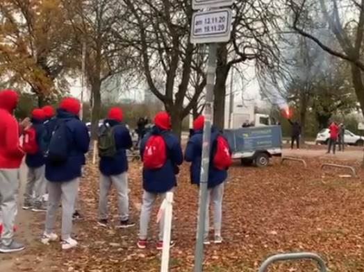 Crvena zvezda se u Minhenu sprema za duel sa Bajernom u Evroligi. Njenih navijača neće biti u hali, ali to ih nije sprečilo da dočekaju svoje ljubimce pred halom.