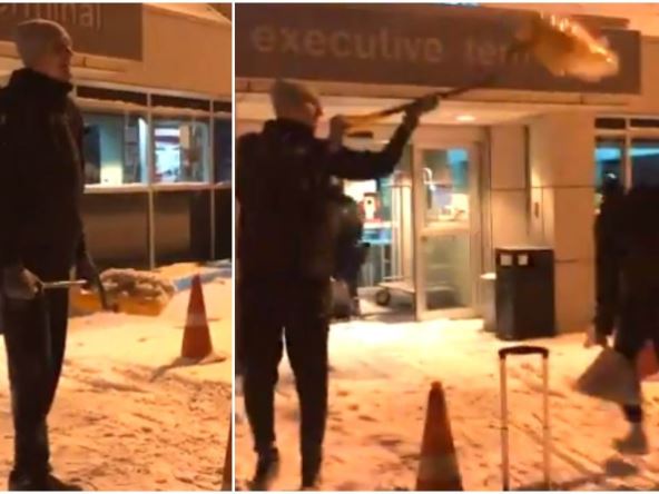 Dvojica momaka iz bivše Jugoslavije, prilično snažnih i naviklih na sneg, upotrebili su svoju snagu da malo ''lopataju''. na aerodromu su pronašli alat, a saigrače su ''zatrpali'' snegom koji je bio u okolini.