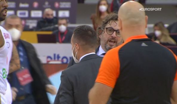 Ipak, sudije se nisu oglasile, a Trinkijeri je ušao na parket i krenuo ka crnogorskom arbitru Igoru Dragojeviću, ponavljajući da je bio faul.