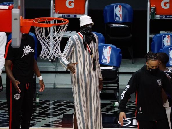 Ibaka se u neobičnoj odevnoj kombinaciji pojavio u "Stejpls centru", pa da kojim slučajem nije bio uz igrače Klipersa - mnogi bi se zapitali ko je ovaj čovek!?