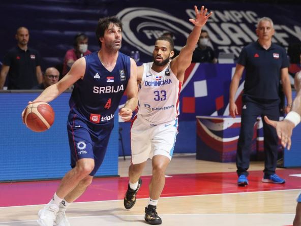 Igra Srbija odlično na prvoj utakmici. Dominikana nema odgovor na sjajne srpske centre i odličnu igru u reketu. Dobrić je imao jedno sjajno zakucavanje, Teodosić jep pokazao magiju, a Marjanović i Petrušev sve što umeju pod košem (22:13).