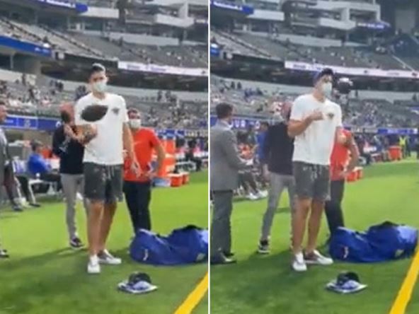 Pred sam početak susreta je usnimljen sa loptom u rukama, pa su mnogi počeli da se šale kako je se sprema za svoje "tačdaun" pasove na terenu, odnosno dodavanja sa jedne na drugu stranu terena što je često činio u prošlosti.