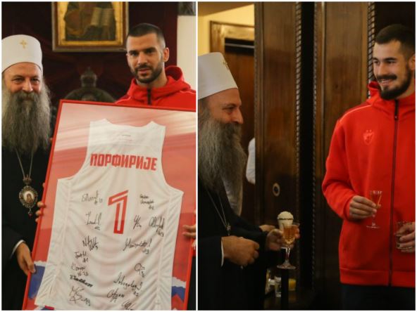 Ispred KK Crvena zvezda patrijarhu Porfiriju, kapiten KK Crvena zvezda mts Branko Lazić poklonio je patrijarhu uramljeni dres KK Crvena zvezda, dok je kapiten ženske ekipe Nevena Naumčev uručila loptu sa potpisima svih košarkašica.