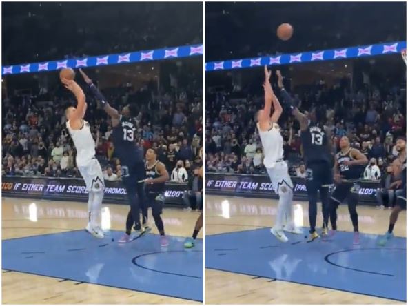 Jokić je igrao jedan na jedan sa Džarenom Džeksonom, uspeo je da ga odgura i nađe prostor za šut, međutim lopta je završila na prvom obruču.