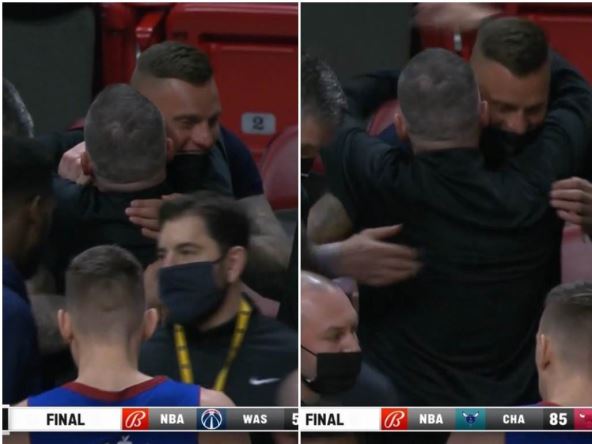 Braća Jokić su se smestila iza klupe Denvera, a pre početka meča prišao im je trener Nagetsa Majk Meloun i izgrlio se sa njima!