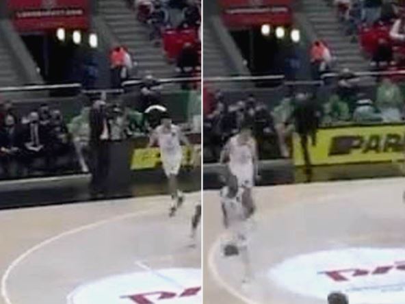 Mladi centar je bio potpuno sam na šutu, zastao je, pogledao ka treneru Željku Obradoviću i posle "odobrenja" je šutnuo i promašio. To je iznerviralo trofejnog stručnjaka koji je posle toga šutnuo tablu koja se nalazila na reklamama.
