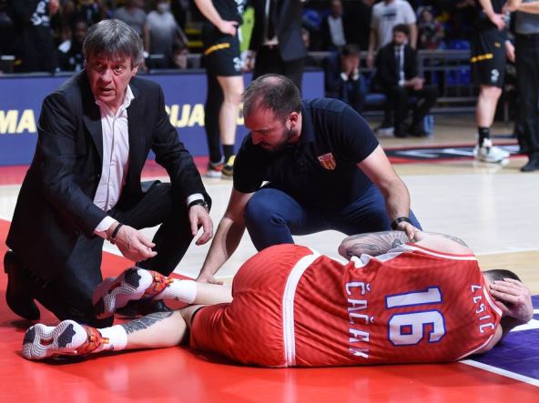 Klupski lekar Borca odmah je pretrčao teren i došao do iskusnog košarkaša koji se držao za koleno, brzo je tu stigao i lekar Partizana Moma Jakovljević, a svi ostali su se držali za glavu i molili da Lešić bude dobro.