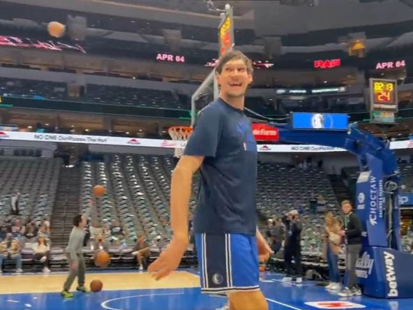 Na društvenim mrežama se pojavio snimak sa treninga Dalasa na kojem Marjanović stoji u ćošku terena i šutira za tri poena, ali trudeći se da što manje gleda ka košu.