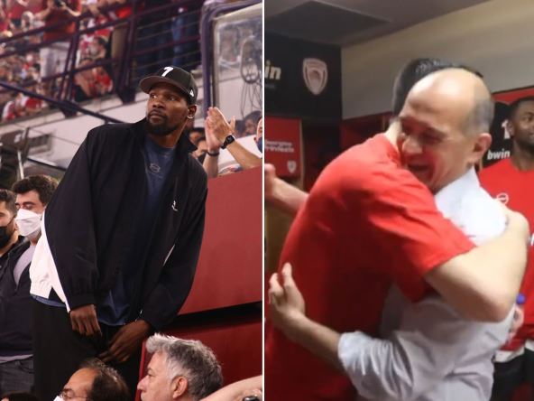Na tribinama je bio i Kevin Durent. Dočekan je zvižducima, pa je potom ostao u šoku kada je video bakljadu navijača. Koliko se o njemu priča govori i snimak koji stiže iz svlačionice grčkog velikana. I tamo su spominjali NBA superstara.