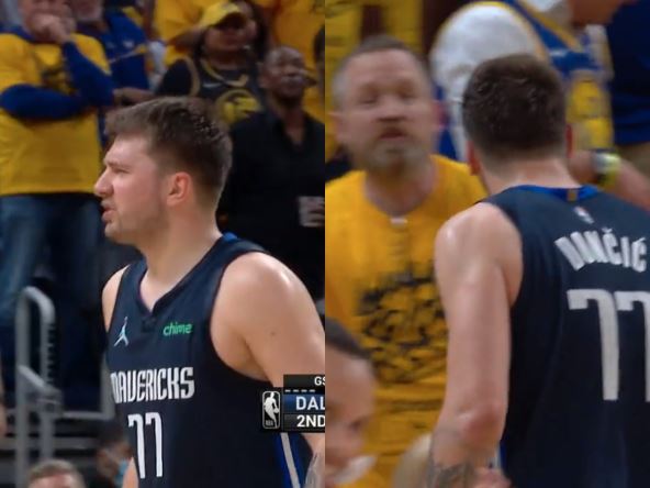 Golden Stejt je odigrao poslednji napad u prvom poluvremenu, a na putu do svlačionice Dončić je nastavio da se raspravlja sa navijačima. Deluje da je tu bilo teških reči, a navijač Golden Stejta koji se vidi u pozadini vidno je iznervirao Dončićevim ponašanjem.