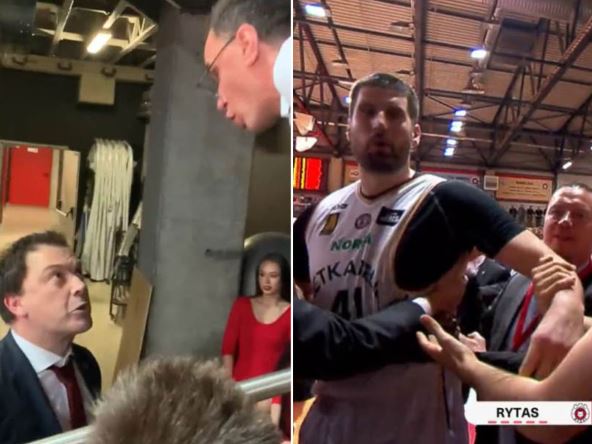 Srpski košarkaški stručnjak Nenad Čanak predvodi Lijetkabelis u finalu litvanske lige, a u trećoj utakmici za titulu protiv Ritasa potpuno je izgubio živce. Očigledno ljut zbog jedne sudijske odluke, nevoljno je krenuo sa terena nakon isključenja, a onda mu se trener rivala  Gidrijus Žibenas našao na putu i posle udarca ramenima pao kao da ga je udario voz.