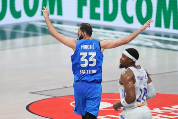 Sjajno je počeo Real Madrid i poveo sa 12:2 na startu, ali je već do kraja prve četvrtine Barsa uspela da se vrati, a do kraja poluvremena da povede. U drugom poluvremenu smo videli ujednačene timove, a iako je Real imao više raspoloženih igrača Nikola Mirotić je bio dovoljno dobar da donese svom timu pobedu vrednu ostanka u igri!