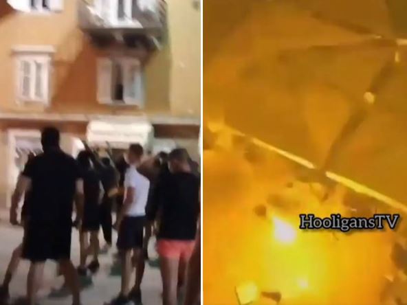 Nastao je pravi krš i lom, leteli su stolovi i stolice, a policija je potom izašla na ulice i uspela da spreči veći sukob. Takođe, zadržali su dva autobusa sa još oko stotinu navijača.