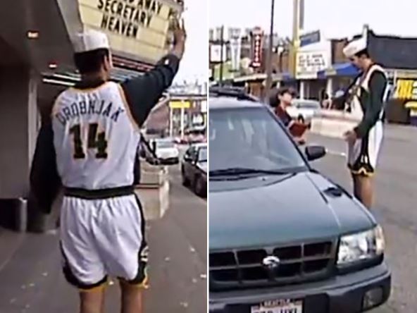 Predrag Drobnjak deli hranu Foto: Twitter/screenshot/SeattleSonics