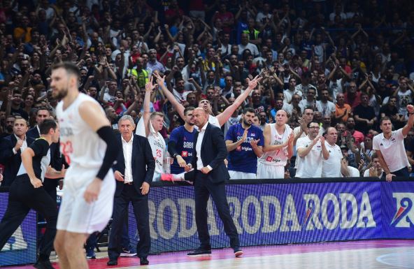 Imali su navijači šta da vide. Uostalom, tik pored terena sedeli su Novak Đoković i Željko Obradović, a Nole je u nekoliko navrata ustao i ovacijama i aplauzima pozdravio neke od poteza srpske ekipe. Bili su tu i Dejan Bodiroga, Dragan Bjelogrlić, Bogdan Bogdanović, Boban Marjanović, Stefan Jović, Danilo Anđušić i još mnoge poznate ličnosti iz svega sporta i drugih sfera.
