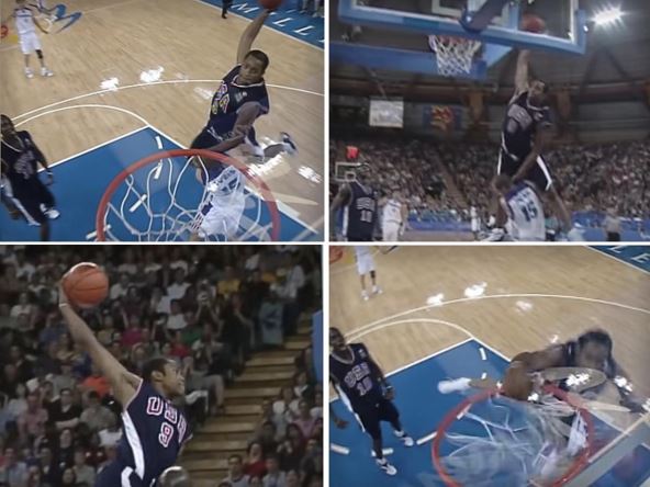 Selekcija Sjedinjenih Američkih Država se 25. septembra sastala sa ekipom Francuske u poslednjem kolu grupne faze takmičenja i na kraju posle sjajne partije Antonija Mekdajsa pobedila sa 106:94. Ipak, ono čega se svi sećaju je atraktivan potez jednog od najvećih atleta u istoriji košarke.