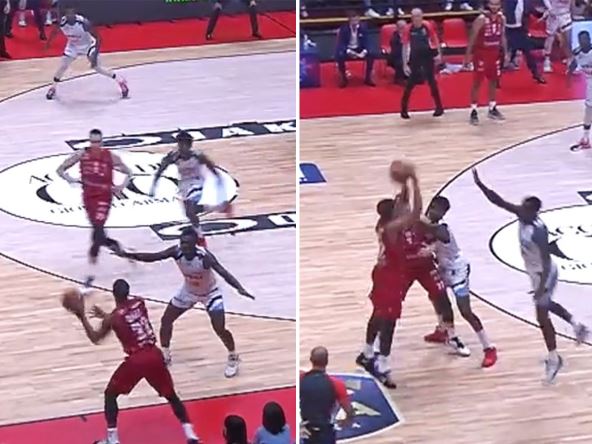 Vodio je Brindisi 82:80, a Devon Hol je na dve sekunde do kraja uzeo loptu da izvede aut. Dodao je do Johanesa Vojtmana, on mu je vratio loptu i onda je usledio šut sa bar devet metara i pogodak! Pogledajte ovaj šut: