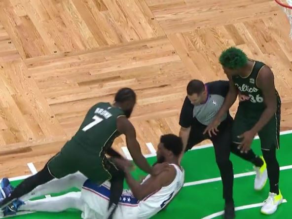 Embid (26 poena) je došao do defanzivnog skoka nakon promašaja Tejtuma, ali uporni Markus Smart pokušao je da se "dočepa" lopte i pored toga. Bio je na Embidovim leđima, potom ga je snažni centar odgurnuo "zarobivši" mu ruku, a nakon što je Smart završio na parketu - skoro je i izgažen i zbog toga je nastala velika gužva.