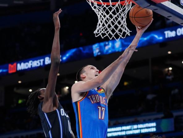 Aleksej Pokuševski je sve bolji! Njegova Oklahoma je savladalaOrlando 116:108, a srpski košarkaš imao je skoro pa dabl-dabl učinak! Ubacio je 16 poena uz 9 skokova, 3 blokade i 2 ukradene lopte, a šut iz igre mu je bio 7/13. Na terenu je proveo čak 32 minuta.