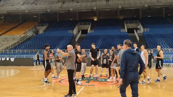 Na očekivano posećenom treningu Partizana, Željko Obradović je pred domaćinima okupio ekipu na centru i rekao tri reči - "Afto ine omada", što u prevodu na srpski znači: "Ovo je tim!". Grci su se nasmejali kada su čuli da Obradović priča njegovim jezikom, a on je i tom porukom pokazao koliko veruje u svoje crno-bele na terenu hale OAKA, u kojoj će u četvrtak pokušati da ostvare treću pobedu u nizu u Evroligi.