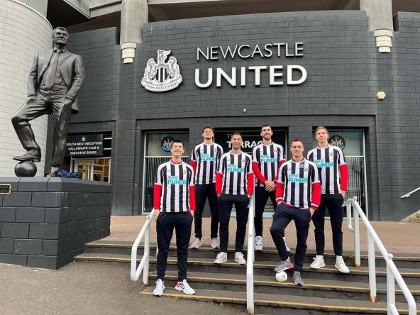 Reprezentativci Srbije u crno-belom. U dresovima Njukasla bili su Danilo Anđušić, Luka Mitrović, Stefan Jović, Uroš Trifunović, Ognjen Dobrić i Aleksa Radanov. Fotku sa stadiona engleskog kluba objavio je Anđušić, povratnik u tim "orlova" i to je izazvalo veliku pažnju i razne šale na društvenim mrežama.