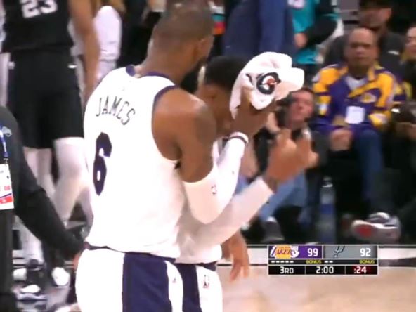 Košarkaši Los Anđeles Lejkersa pronašli su formu u NBA ligi, pa tako na poslednjih šest utakmica imaju čak pet pobeda i gotovo da su neutralisali katastrofalan start sezone. Istina, nije bilo lako da nastave dobar niz na meču protiv San Antonio Sparsa (143:138), posebno kad se ima u vidu da je domaćin u Teksasu bio veoma ratnički raspoložen. O tome govori i "trofej" koji je sa meča poneo Rasel Vestbruk.