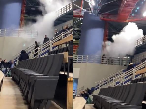 Ima i povređenih, dolazila su i kola Hitne pomoći. Prema informacijama koje stižu iz dvorane, huligani AEK-a uleteli su na tribine i prvo su uzeli protivpožarne aparate, otvorili ih i počeli su da ih koriste ka navijačima protivničkog kluba. Onda su izvadili metalne šipke i motke i haos se nastavio. Svi prisutni bili su u šoku, uključujući i igrače na terenu.